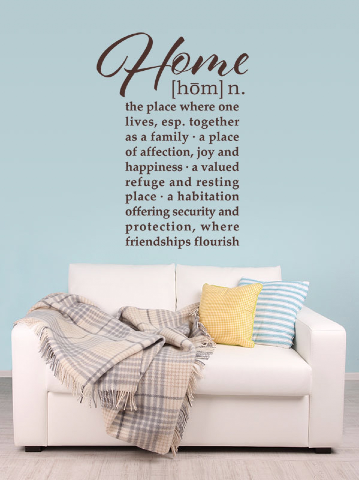 Wandtattoo Home - the place where one lives, esp. together as a family - a place of affection, joy and happiness - a valued refuge and resting place - a habitation offering security and protection, where friendship flourish