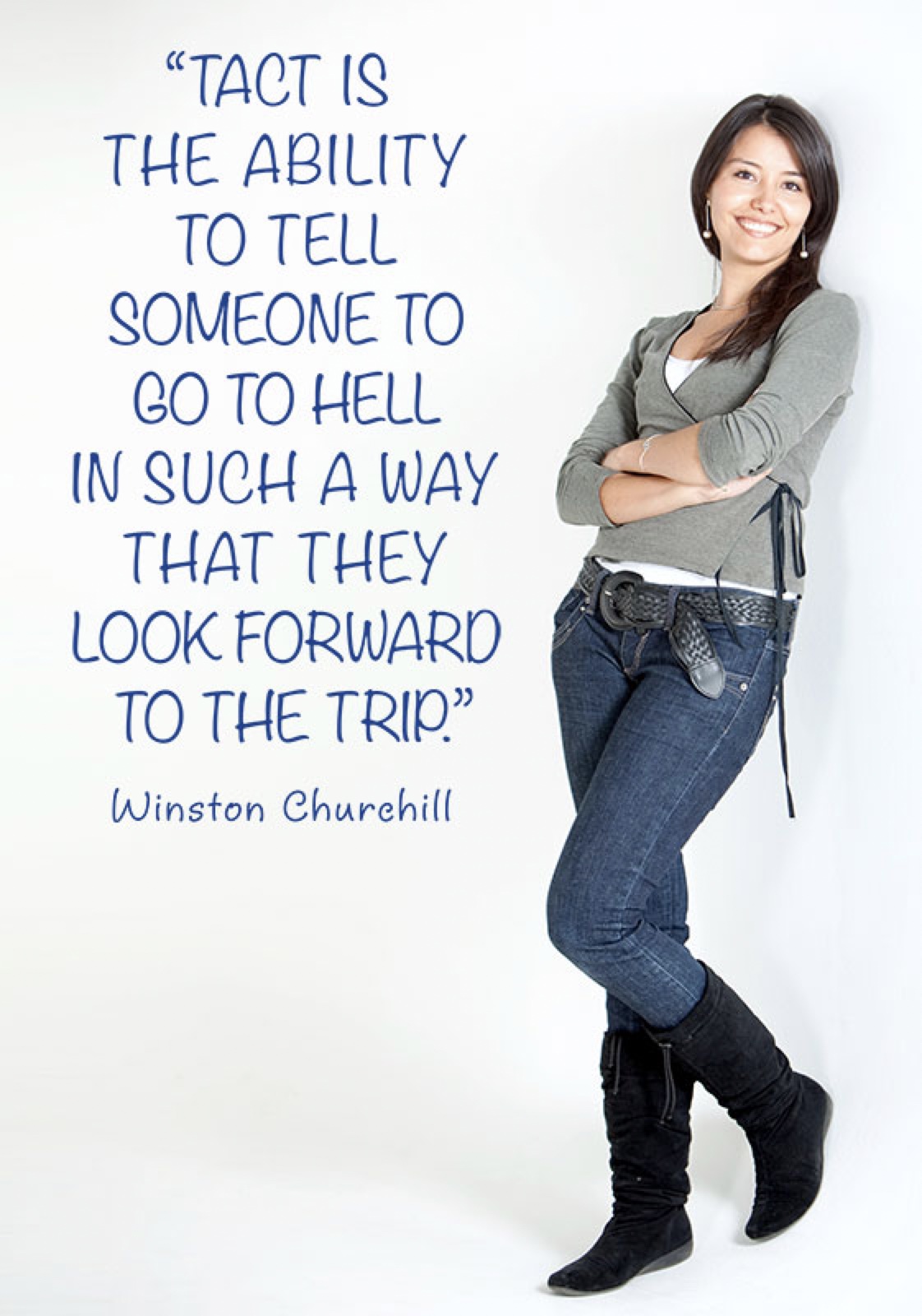 Wandtattoo Tact is the ability to tell someone to go to hell in such a way that they look forward to the trip. Ein Zitat von Winston Churchill.