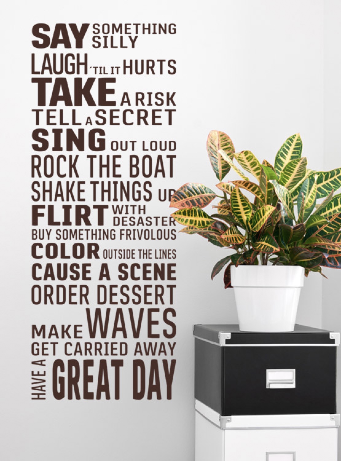 Englische Worte: Zitate, Tiefsinniges, weniger Tiefsinniges, Lustiges, Erstaunliches. Für alle Liebhaber der englischen Sprache. Für viele Menschen klingen Zitate in Englisch einfach besser. Vielleicht finden Sie hier Ihr Wunsch-Wandtattoo!