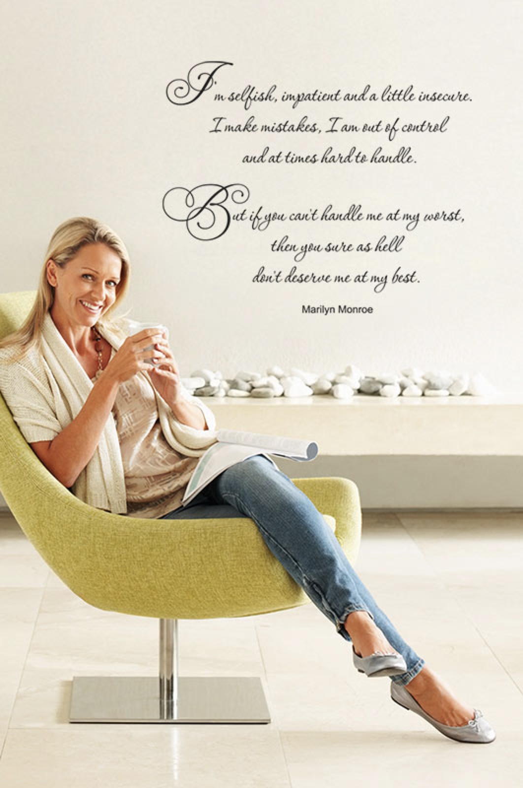 Wandtattoo I´m selfish, impatient and a little insecure. I make mistakes, I am out of control and at times hard to handle. But if you can´t handle me at my worst, then you sure as hell don´t deserve me at my best. Marilyn Monroe