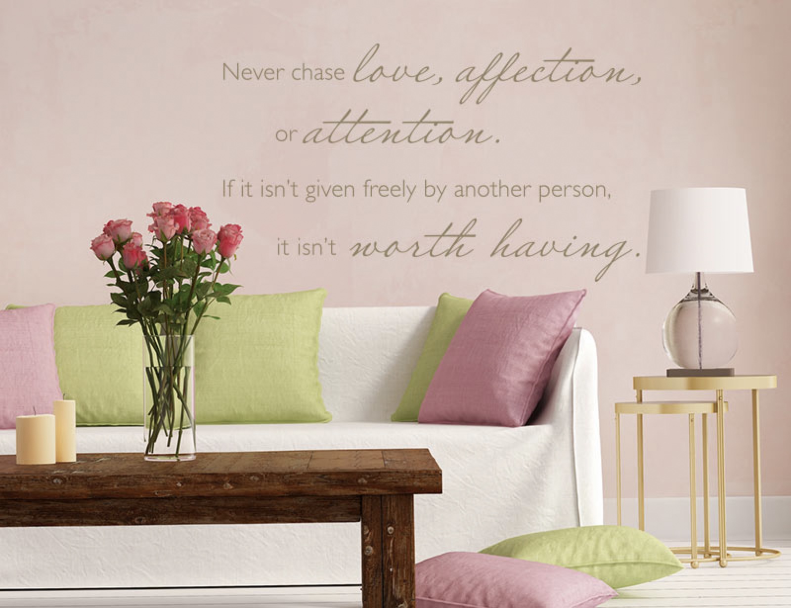 Wandtattoo Never chase love, affection or attention. If it isn’t given freely by another person, it isn’t worth having.