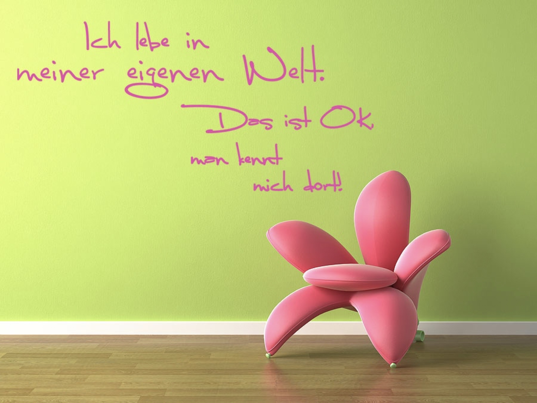 Wandtattoos halten auf fast allen trockenen und staubfreien Oberflächen. Bitte prüfen Sie trotzdem vor Ihrer Bestellung, ob Ihre Wand zum Aufkleben eines Wandtattoos geeignet ist. Wandtattoos halten nicht auf bestimmten silikonhaltigen (Latex-) Farben. Rauputzwände eignen sich nur, wenn die Oberfläche nicht zu grob ist und wenn sie mit Dispersionsfarbe überstrichen sind. Grundsätzlich gilt: Wenn ein Stück Tesafilm FEST hält, hält auch das Wandtattoo. Die auf Ihrem Bildschirm dargestellten Farben können von den Wandtattoofarben abweichen, im Zweifel fordern Sie bitte ein Muster an. Wir weisen Sie darauf hin, dass unsere Wandtattoos keine Handelswaren sind, sondern für jeden Kunden einzeln nach eigenen Vorgaben und Wünschen in Form, Farbe und Groesse angefertigt werden. Aus diesem Grund ist das normale Widerrufsrecht für Fernabsatzverträge gemäß § 312d Abs. 4 Nr. 1 für unsere Wandtattoos ausgeschlossen.