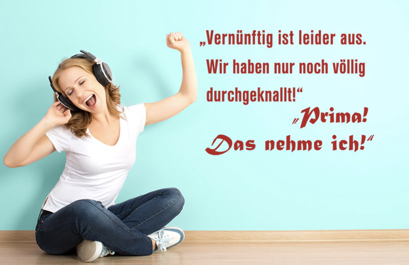 Wandtattoo „Vernünftig ist leider aus. Wir haben nur noch völlig durchgeknallt!“ „Prima! Das nehme ich!“