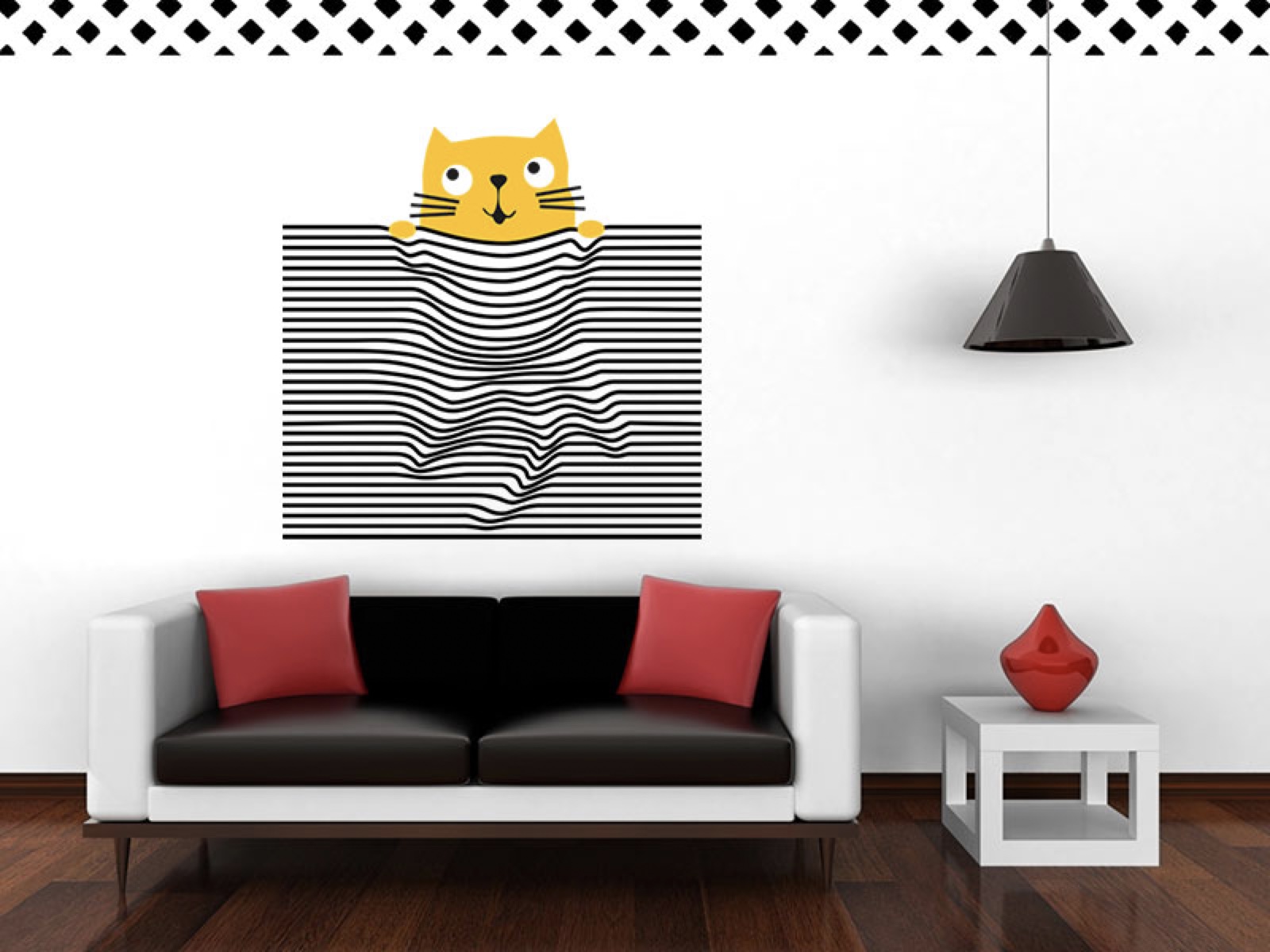 Wandtattoo Katze Witzige Katzenkarikatur, Farben wählbar.