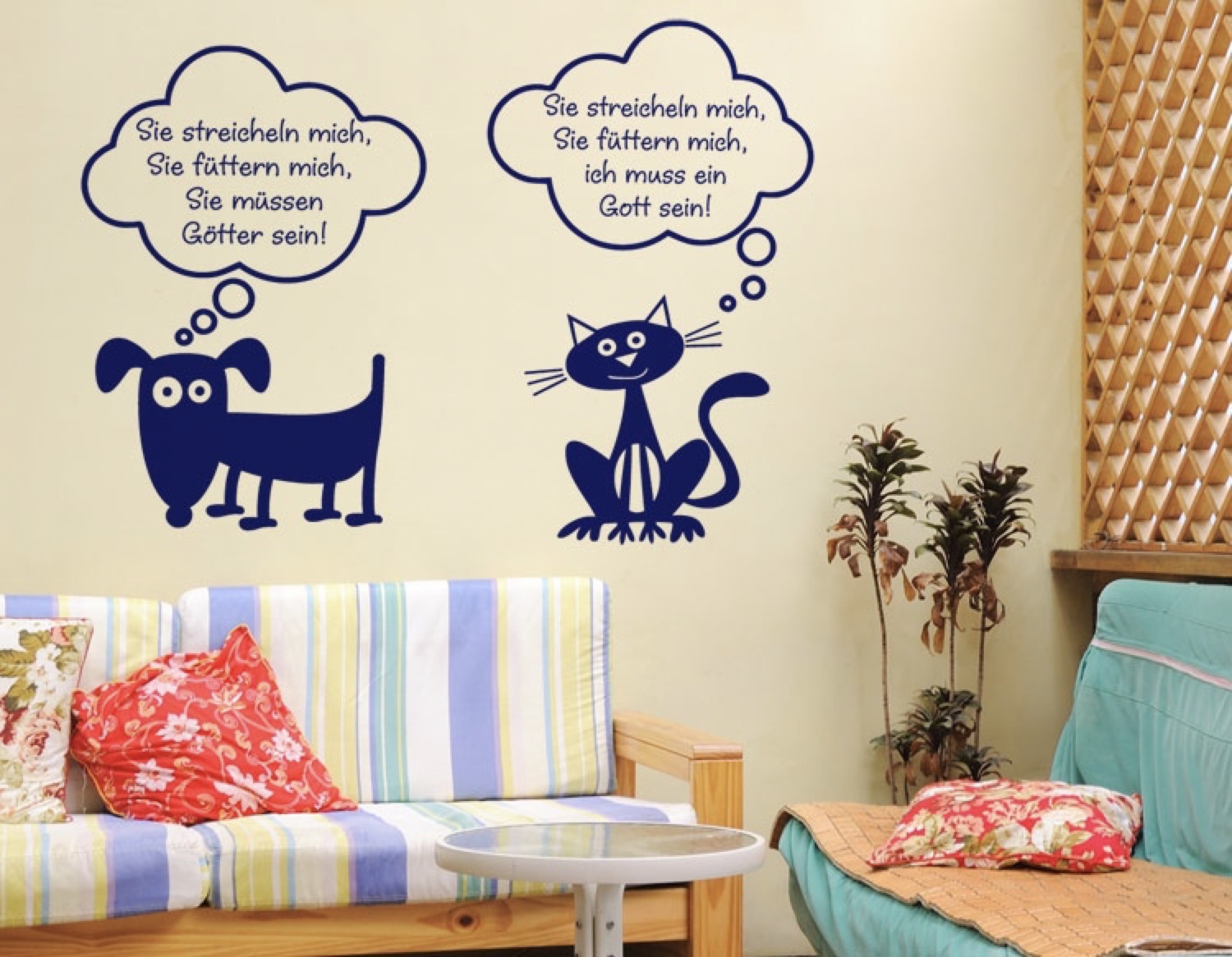 Wandtattoo Hund und Katze Hund: Sie streicheln mich, sie füttern mich, sie müssen Götter sein! Katze: Sie streicheln mich, sie füttern mich, ich muss ein Gott sein!