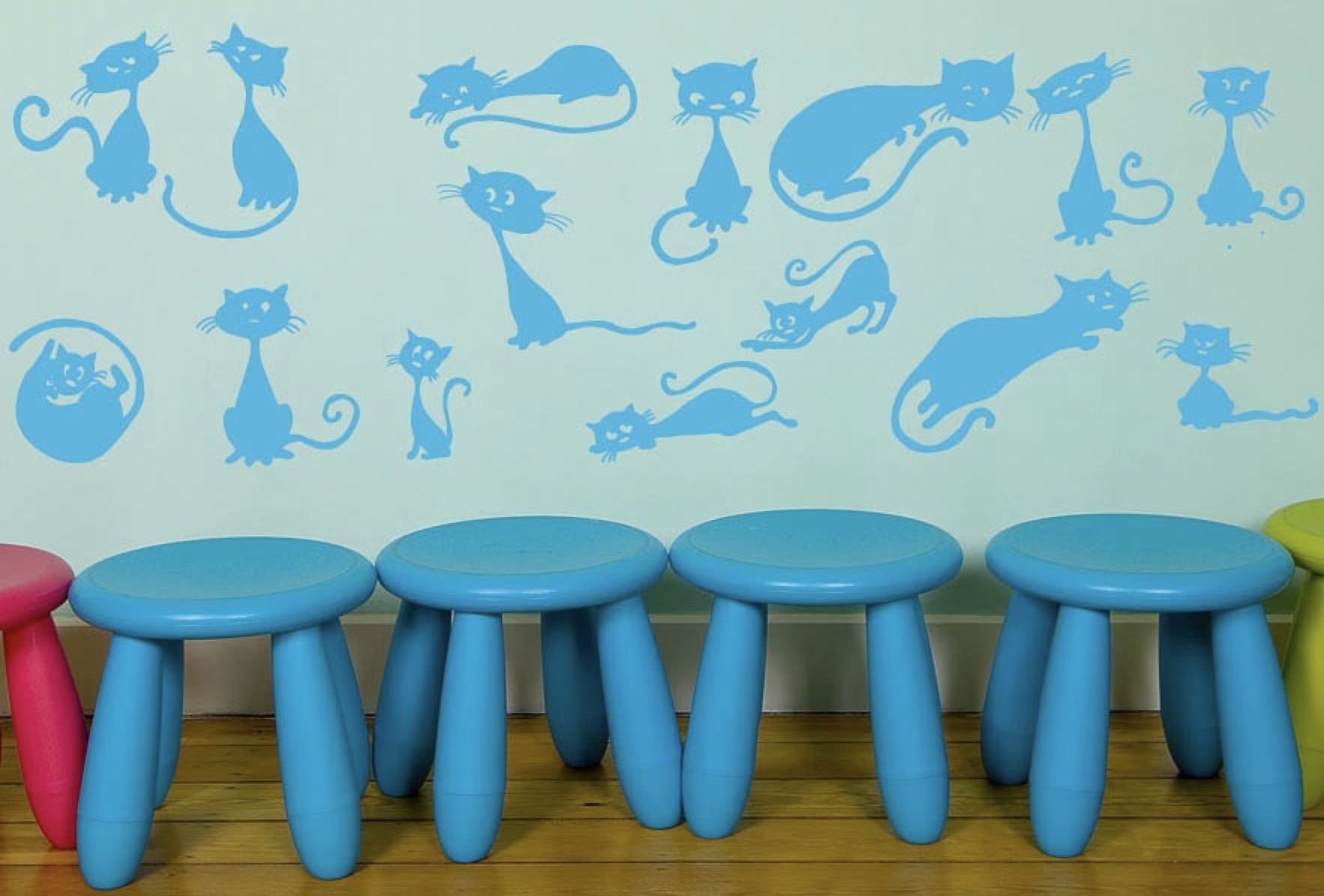 Wandtattoo Lucky Cats 14 lustige Katzentattoos von der Designerin Claudia Eppelt gezeichnet. Durchschnittliche Grösse 15 bis 25cm.