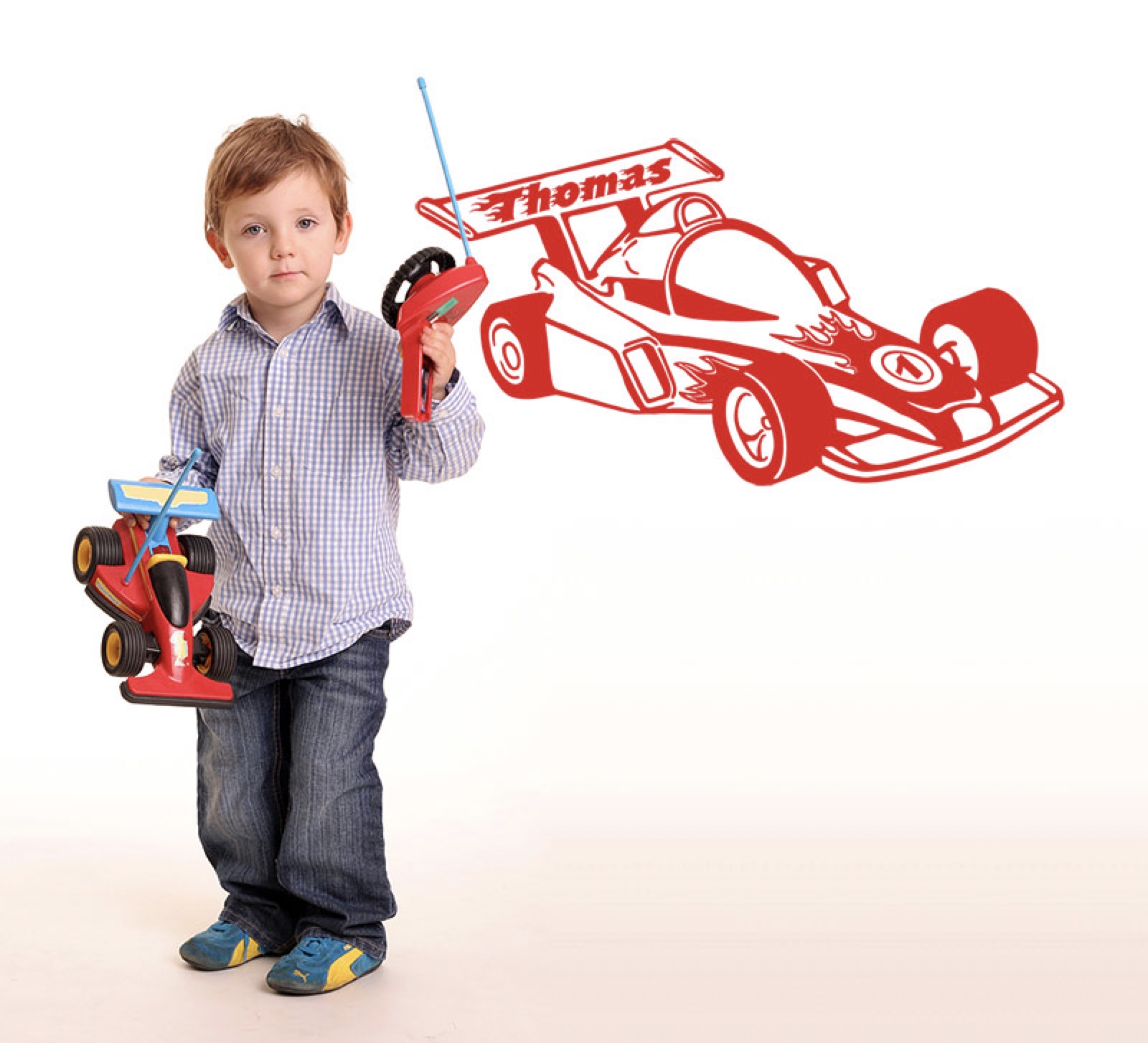 Wandtattoo Rennauto Rennauto mit individuellem Namen.