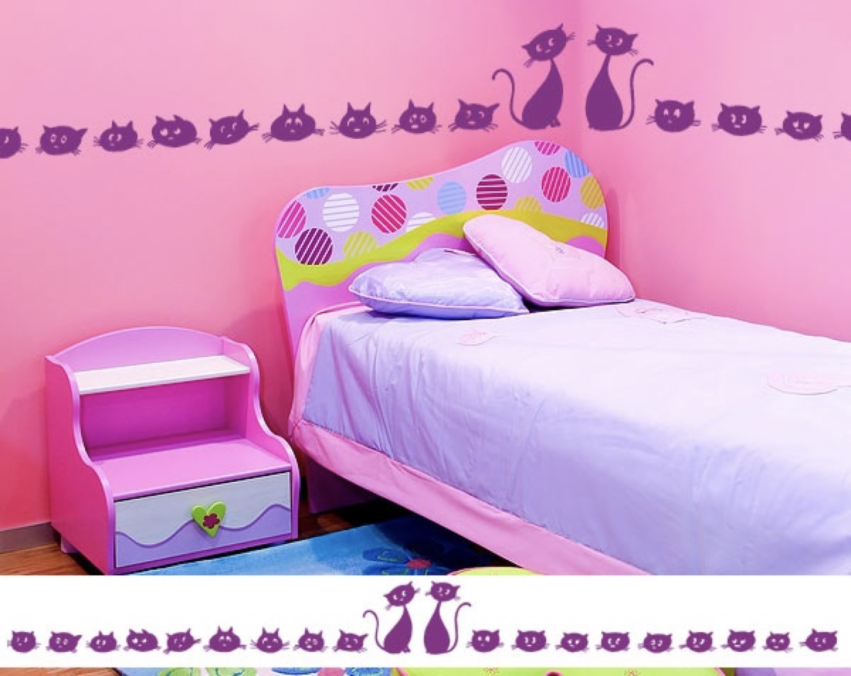 Wandtattoo Katzenbordüre Zwei lustige Katzen und 18 Katzengesichter als Bordüre, insgesamt 2,40 Meter lang. Eine Zeichnung von Claudia Eppelt.