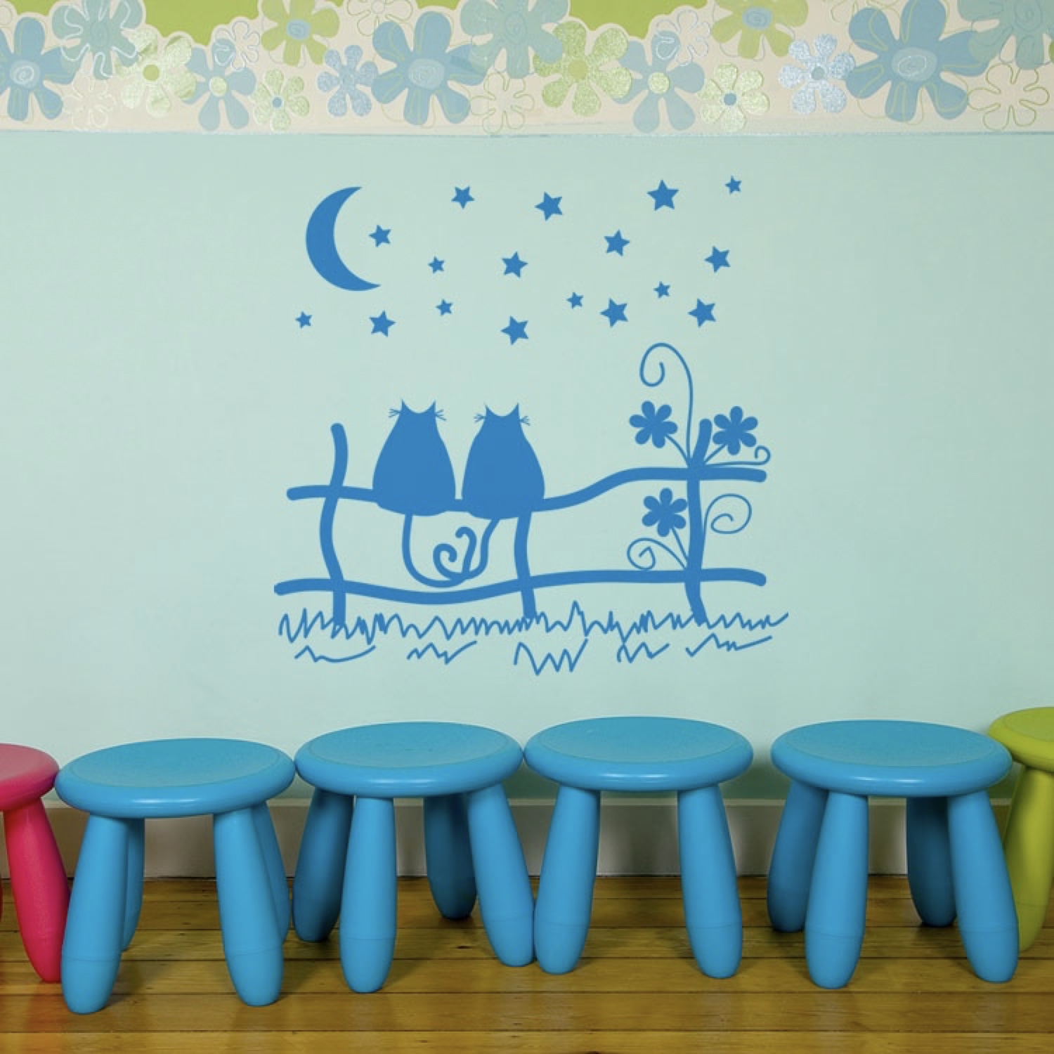 Wandtattoo Verliebte Katzen Mond und Sterne können beliebig angeordnet werden