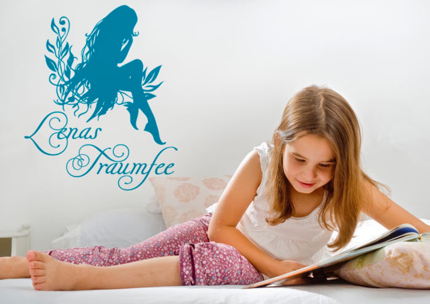 Wandtattoo Schlafende Fee mit individuellem Namen.
