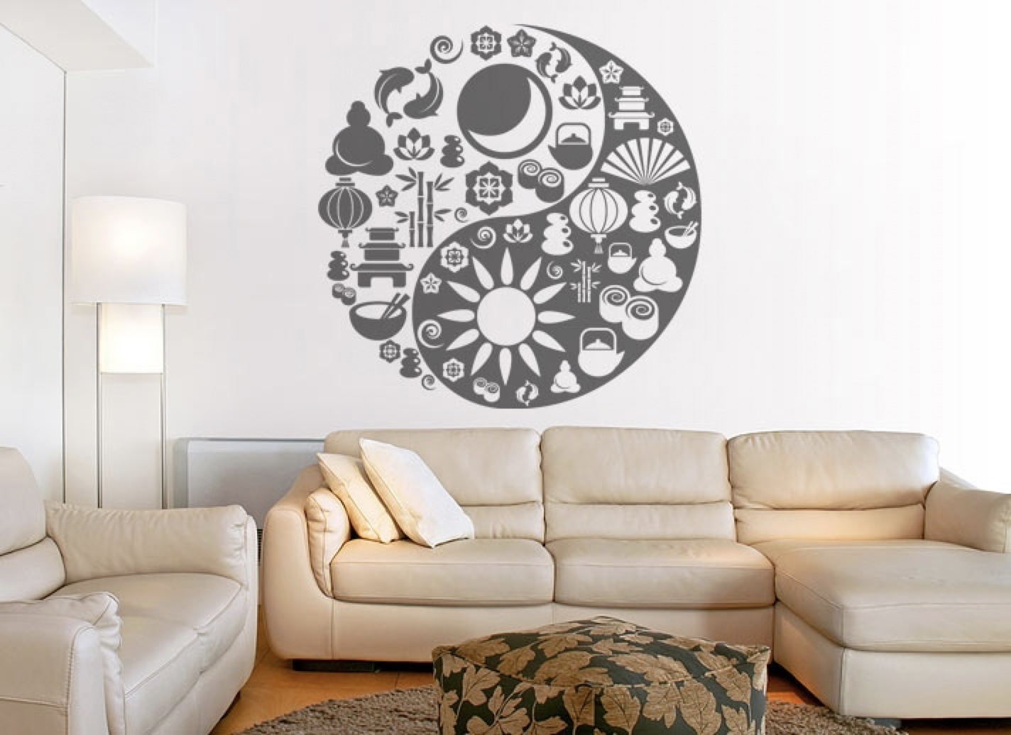 Wandtattoo Yin Yang mit Zen Symbolen